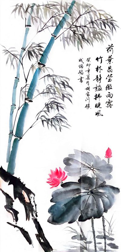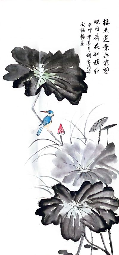 成炳韬绘画:水墨荷花