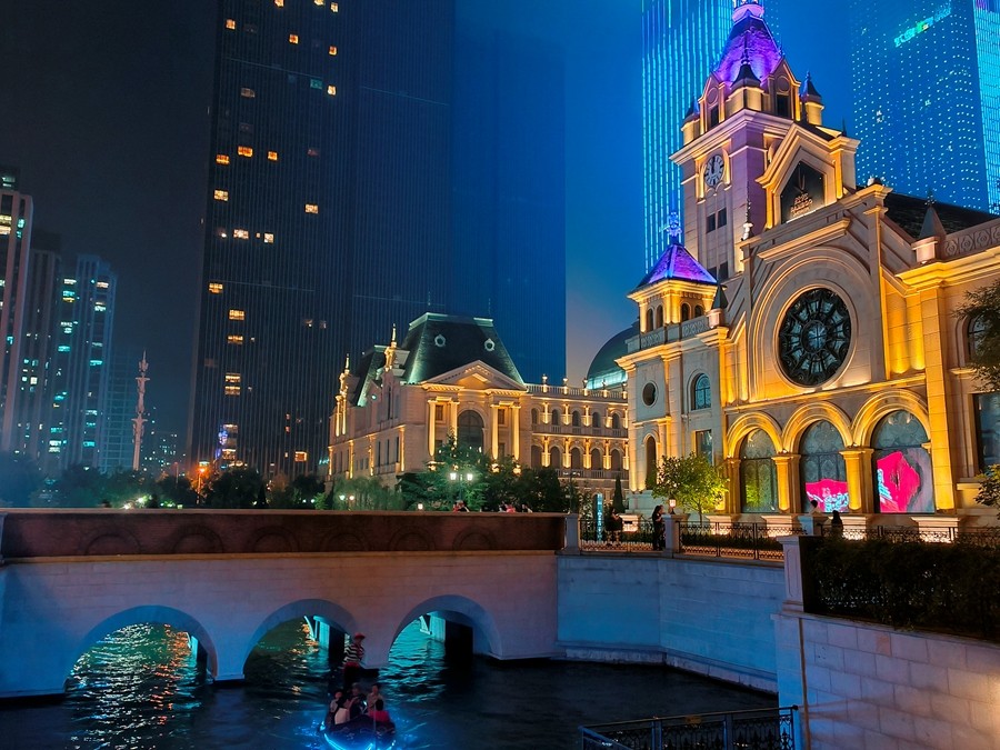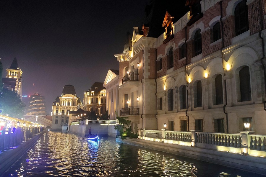 大连照旧一座浪漫的都会 。夜幕降临 ,华灯初上 ,东方威尼斯水城壮丽的灯光勾勒出独具风情的布鲁日墙体 ,运河两岸狼籍着多座欧洲气概的城堡修建 ,它们各具风姿倒映在水城河面上 。蜿蜒的水巷 ,流动的清波 ,人们陶醉在碧波激荡的梦中 ,滨城的诗情画意在这里获得油画般渲染 。(小庄矿 雷冬华)