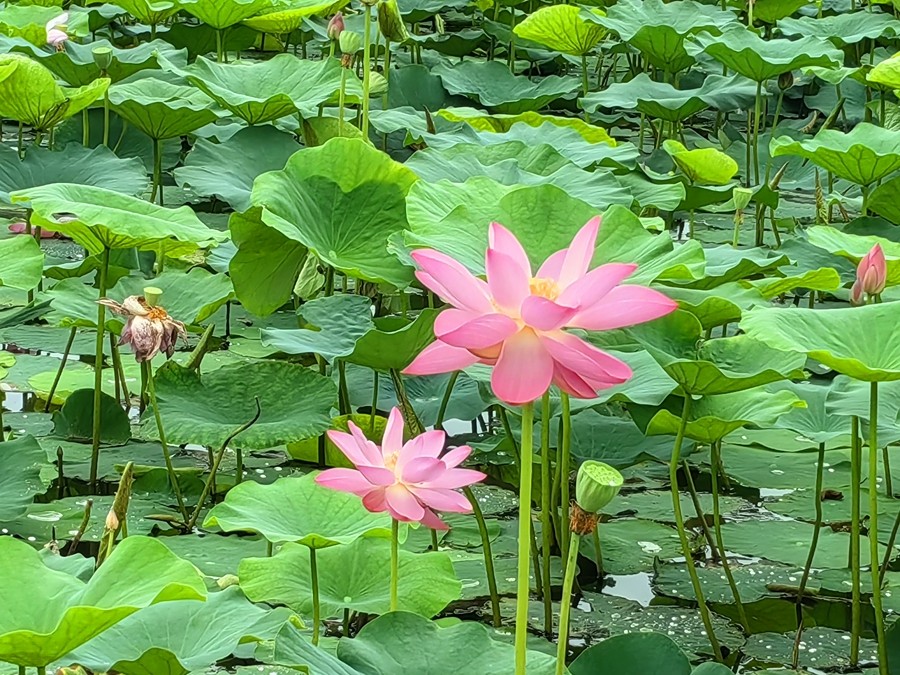 ÇàºÉ¸ÇÂÌË®£¬Ü½ÈØÅûºìÏÊ¡£Ê¢ÏÄʱ½Ú£¬ºÉ»¨Ê¢¿ª¡¢ºÉÒ¶ÌïÌï¡¢·ÛºÉÒ¡Ò·¡¢ÇåÏãÆË±Ç£¬Ïв½ºÉÌÁ±ß£¬Ê¹È˲»½ûÌÕ×íÔÚ¡°½ÓÌìÁ«Ò¶ÎÞÏޱ̡±µÄ»¾³ÖС££¨´óèóÓî¿ó ÕÔ·¼ÑÞ£©