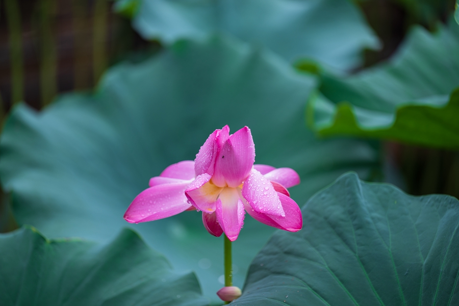 雨后的荷花,成绩了大自然的一幅清新画卷。荷叶上的水珠晶莹剔透,是晨露的精灵在跳跃。微风吹过,水珠在荷叶上转动,散发出微微的光线,似乎在述说着雨后的清新与清静。这一刻,静谧与生气交织,时间在荷塘边悄然驻足,留下一幅自然温馨的画面,让人心灵得以舒展,远离世间的烦嚣。(张国鹏)